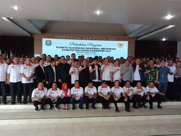 Pengurus Komite Olahraga Nasional Indonesia (KONI) Kabupaten OKU Periode 2026-2030 dilantik dan dikukuhkan di Pendopo Rumah Dinas Bupati OKU pada Senin siang menjelang sore (16/2/26).