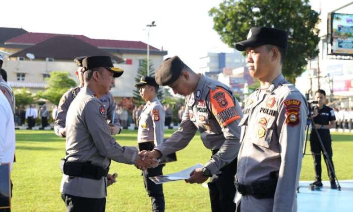 Kapolda Sumatera Selatan Irjen Pol Dr. Sandi Nugroho, S.I.K., S.H., M.Hum. memimpin Apel Pemberian Penghargaan kepada personel berprestasi di Lapangan Apel Mapolda Sumsel, Senin (13/4/2026) pukul 07.00 WIB. Sebanyak 48 personel dari berbagai satuan menerima penghargaan atas kinerja luar biasa di bidang penegakan hukum, pengabdian internasional, pelayanan kemanusiaan, hingga prestasi olahraga.