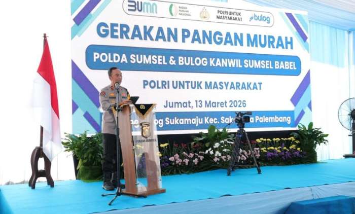 Polda Sumatera Selatan menggelar Gerakan Pangan Murah Polri secara serentak di 47 titik yang tersebar di seluruh kabupaten dan kota wilayah Sumatera Selatan menjelang Hari Raya Idul Fitri 1447 H.