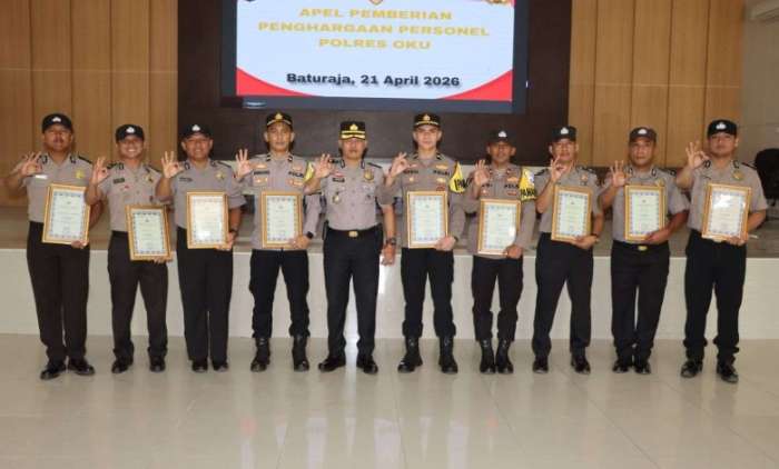 Pemberian penghargaan tersebut berdasarkan Keputusan Kepala Kepolisian Resor Ogan Komering Ulu Nomor: Kep/02/IV/2026 tentang Pemberian Penghargaan kepada Personel Polri di Lingkungan Polres Ogan Komering Ulu.
