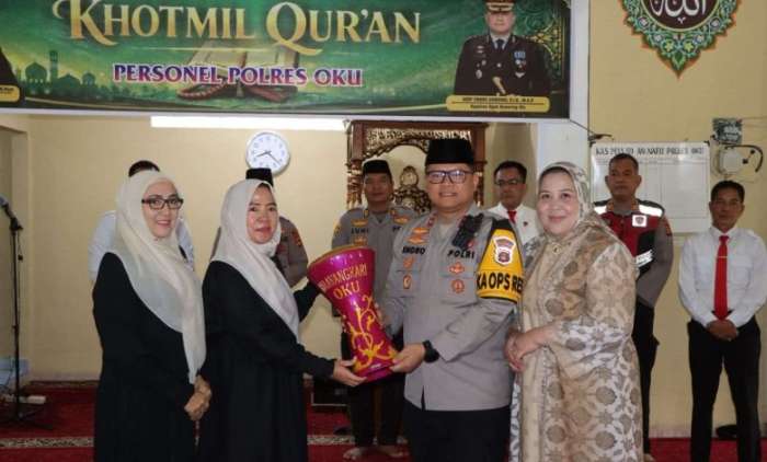 Kapolres Ogan Komering Ulu (OKU) AKBP Endro Aribowo, S.I.K., M.A.P., menyerahkan seperangkat alat hadroh kepada Group Hadroh Bhayangkari Cabang OKU. Kegiatan tersebut berlangsung di Masjid An-Nafii’ Mapolres OKU, Jumat (20/2/2026).