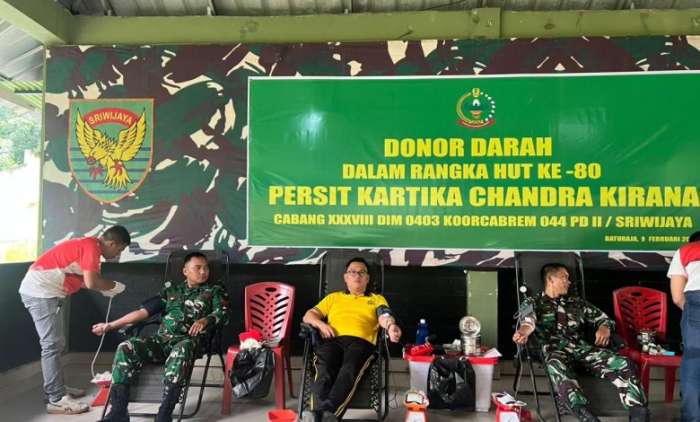 Dalam rangka memperingati Hari Ulang Tahun (HUT) Persit Kartika Chandra Kirana ke-80, personel Polres Ogan Komering Ulu (OKU) turut ambil bagian dalam kegiatan donor darah yang digelar di Aula Alsintan Kodim 0403 OKU, Senin (9/2/2026) pagi.