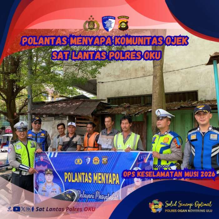 Satuan Lalu Lintas (Sat Lantas) Polres Ogan Komering Ulu (OKU) terus mengedepankan pendekatan humanis dalam membangun kesadaran berlalu lintas di tengah masyarakat. Salah satunya melalui kegiatan bertajuk “Polantas Menyapa Ojek” yang digelar di Pangkalan Ojek Simpang Ogan 4, Rabu (4/2/2026).