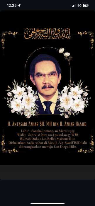 Duka datang dari kediaman Mantan Ketua Komisi Pemberantasan Korupsi (KPK) Antasari Azhar yang dikabarkan meninggal dunia. Hal meninggalnya Antasari itu, dibenarkan oleh Kuasa Hukumnya Boyamin Saiman.